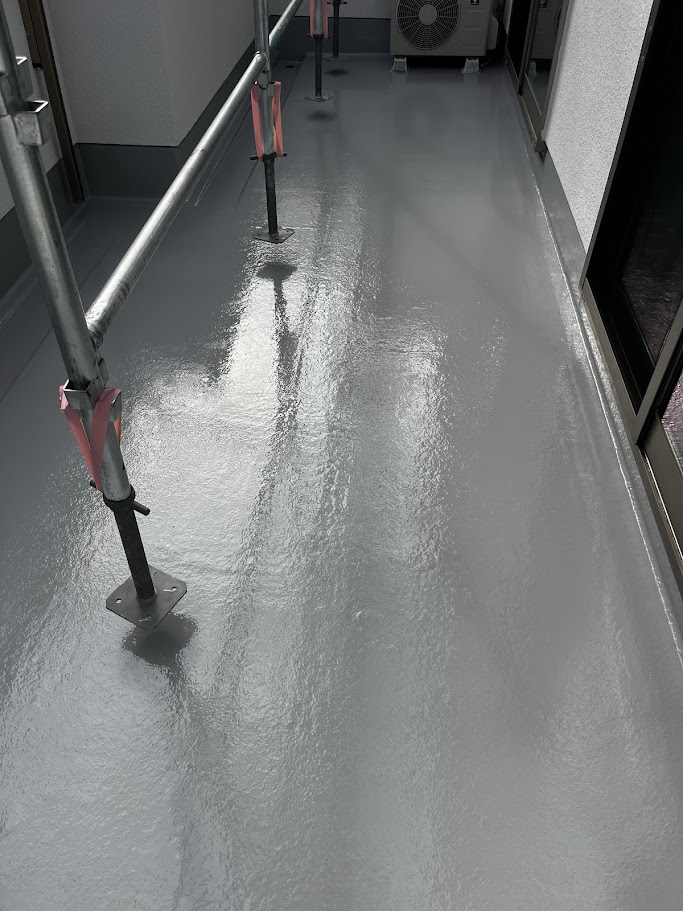 外壁塗装と同時に、ベランダ防水工事も行いました。