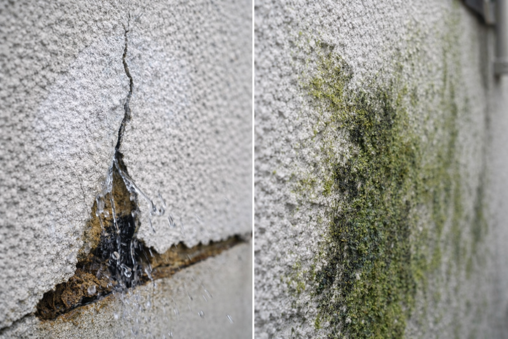 チョーキングが出ている状態は、すでに塗膜の防水性能がかなり低下しているサインです。 この状態を放置すると、外壁材自体に雨水が染み込み、ひび割れや反り、カビ・コケの発生につながる可能性があります。