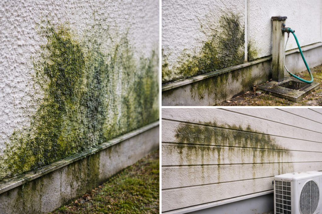 - コケやカビ、黒ずみが目立つ