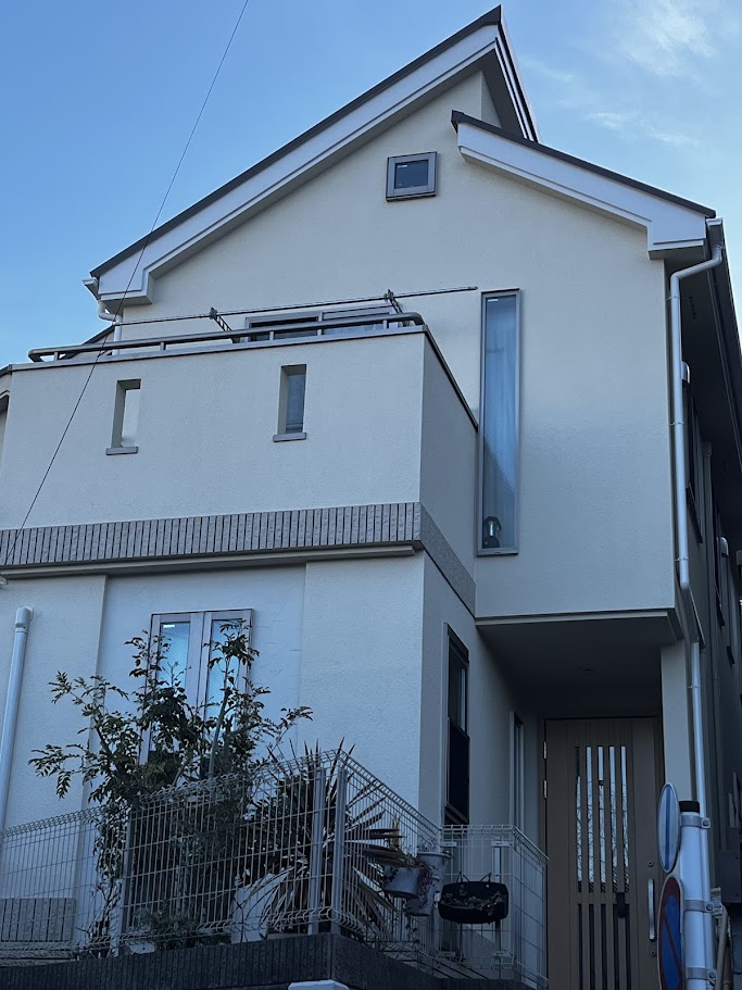 「外壁の色、ちょっと薄くなってきたかな?」 「屋根もそろそろ手を入れたほうがいいのかも…」 こんなふうに感じつつも、 外壁塗装って分からないことが多くて、なかなか一歩が踏み出せない という方、実はとても多いです。 今回は、鎌倉市で行った戸建て住宅の 外壁塗装・屋根塗装・ベランダ防水工事について、 できるだけ分かりやすくご紹介します。 今回のポイントは、建物全体を「艶消し(つやけし)」でまとめたこと。 ピカピカしすぎず、落ち着いた雰囲気の仕上がりになりました。