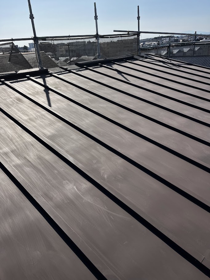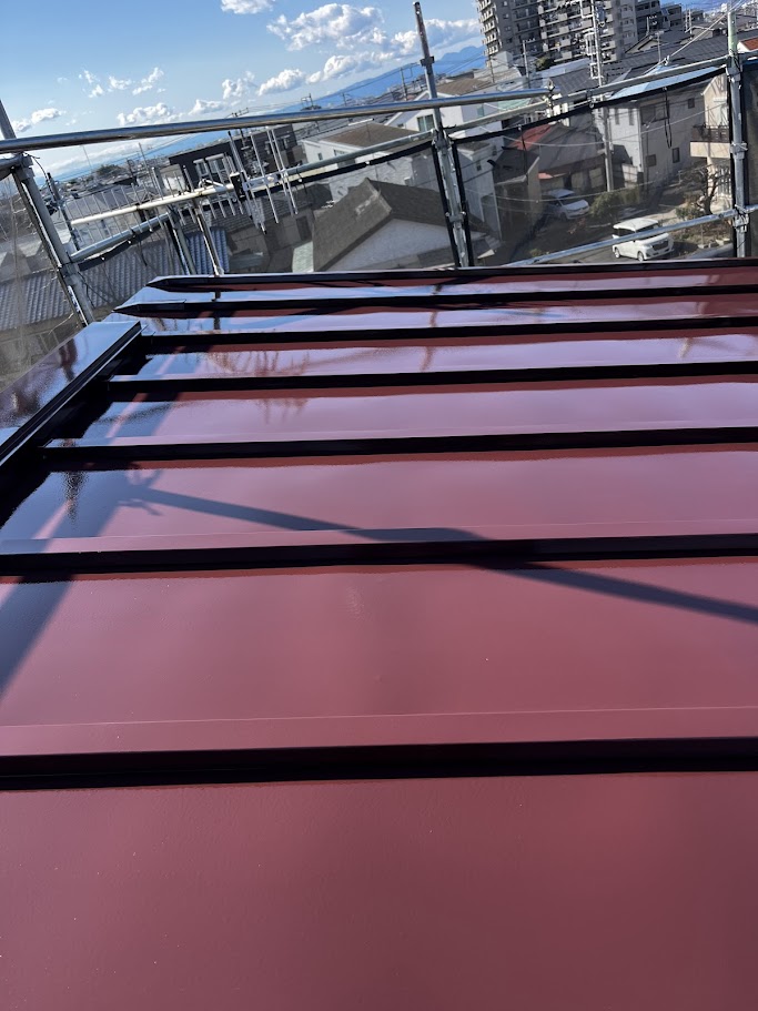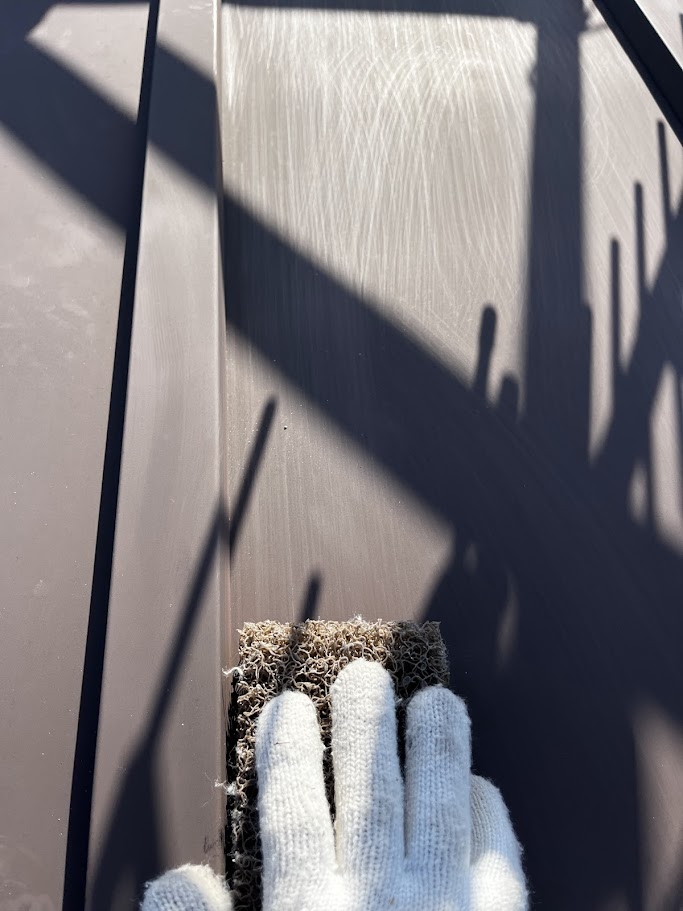 屋根は紫外線・雨風の影響を最も受ける場所です。 今回はグランセラベスト2液ファインを使用し、耐久性と保護性能を重視しました。