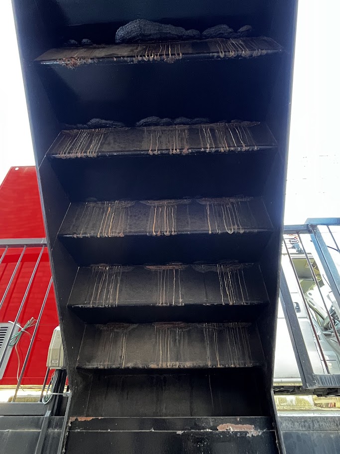 鉄骨階段は雨風の影響を受けやすく、サビが出やすい場所です。 今回はサビが酷かったため、電動工具を使用してケレン作業を行い、浮いたサビや脆くなった塗膜をしっかり除去しました。 下地を整えてから塗ることで、塗膜の密着が良くなり、仕上がりと耐久性が変わります。